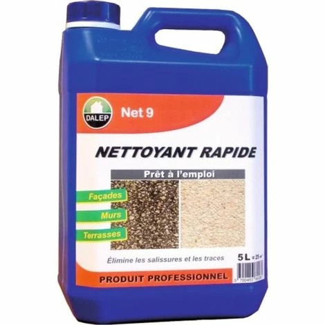 Décapant et décollageNettoyant rapide NET 9 Élimine les salissures, les traces de pollution… Nettoyage de façades, murs, pignons, terrasses… Détergent curatif à base de chlore.Senteur parfumée.Prêt à l’emploi.Application par pulv Fabrication Française