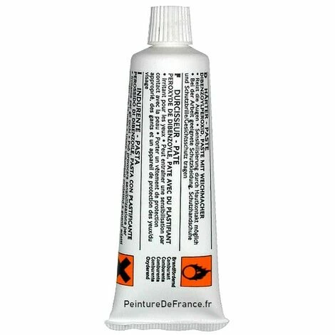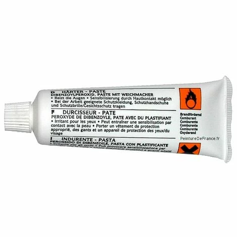 Durcisseur pâteux blanc à base de péroxyde de dibenzoyle qui mélangé à la base sert à polymériser les mastics polyesters SINTO pour leur permettre de durcirent