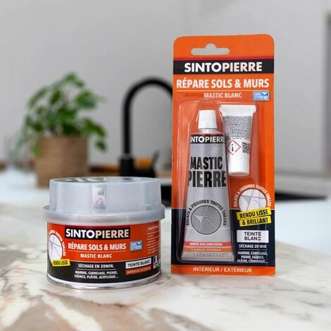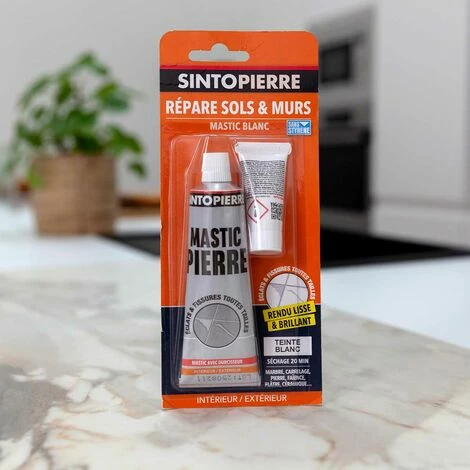 Le Répare Sols et Murs est composé d’un mastic polyester bi-composants idéal pour des réparations extrêmement résistantes. Grâce à ses composants, il répare tous types de brèches, crevasses, trous, fissures…il reconstitue facilement les parties manquantes.Le Répare Sols et Murs sèche et durcit rapidement (15 à 20 minutes) en devenant aussi dur que la pierre, avec un rendu lisse et brillant comme le marbre après ponçage. Pour obtenir des teintes intermédiaires, mélanger les mastics avant de mettre le durcisseur.