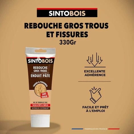 - Idéal pour reboucher les gros trous et les fissures sur le bois