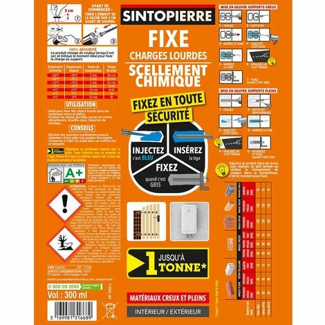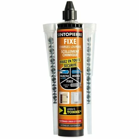 Le scellement chimique est idéal pour fixer et sceller des charges lourdes jusqu’à 1 tonne : brique pleine, brique creuse, parpaing, béton.Grâce à son témoin de pose, fixez-le en toute sécurité. Le principe de fonctionnement est simple et pratique : il suffit d’injecter le produit dans les trous puis de réaliser un plot témoin ou vérifier le changement de couleur dans la canule. Lorsque le produit est gris, c’est le moment pour fixer la charge au support.